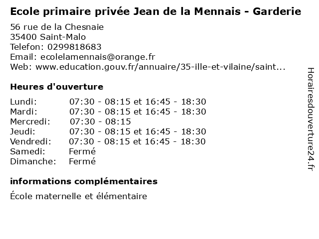Termes de recherche pour Ecole primaire privée Jean de la Mennais - Garderie:la, de, jean, moulin, ecole, privé, nationale, lycee, cours, public, primaire, maternelle, publique, collège, garderie, privée, orientation, enseignement, cio, mennais |