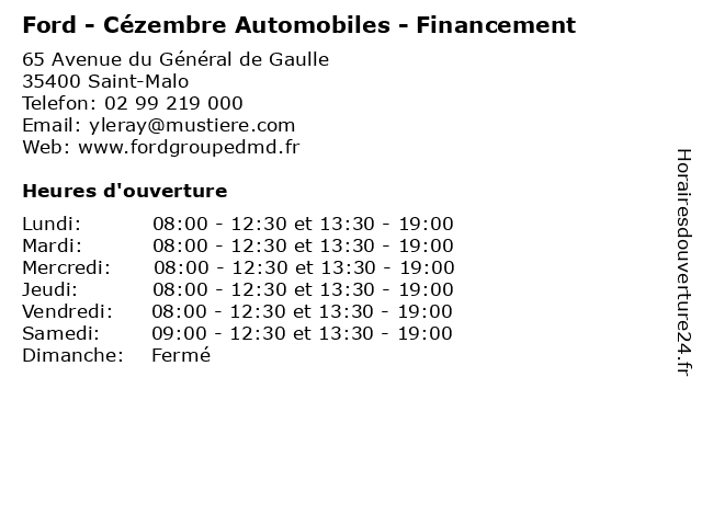 | Mercredi | 08:00-12:30 et 13:30-19:00 |