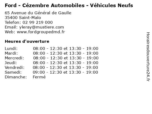 | Mercredi | 08:00-12:30 et 13:30-19:00 |