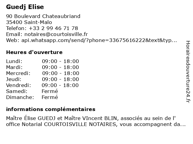 1 Le Bistrot De Courtoisville (Distance: 0,05 km) 2 Avenue du Révérend Père Umbricht, 35400 Saint-Malo bistrot, courtoisville, de, le 2 Grand Hôtel de Courtoisville - Piscine & Spa (Distance: 0,08 km) 9 Rue Michelet, 35400 Saint-Malo courtoisville, de, grand, hôtel, piscine, spa, séminaire, tourisme 3 Relais du Silence - Hôtel de Courtoisville (Restaurant) (Distance: 0,10 km) 9 rue Michelet 69, 35400 Saint-Malo courtoisville, de, du, hebergement, hotel, hôtel, relais, restaurant, silence, tourisme 4 Ecole maternelle publique Courtoisville (Distance: 0,36 km) 2 rue René Rosse, 35400 Saint-Malo cio, collège, cours, courtoisville, ecole, enseignement, jean, lycée, maternelle, moulin, nationale, orientation, primaire, privé, privée, public, publique, école, éducation, élémentaire 5 Elise Guenette - Sage-femme (Distance: 2,30 km) 1 rue de la Marne, 35403 Saint-Malo consultation, docteur, elise, femme, guenette, med, médecin, médecine, sage, traitement 6 Ecole Elémentaire Publique Courtoisville (Distance: 3,06 km) 48 avenue du 47ème Régiment d'Infanterie, 35400 Saint-Malo cio, collège, cours, courtoisville, ecole, elémentaire, enseignement, jean, lycée, maternelle, moulin, nationale, orientation, primaire, privé, privée, public, publique, école, éducation |