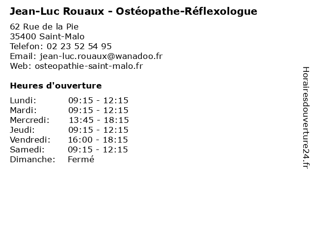 | Dimanche | Fermé |