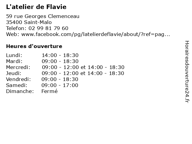 | Mercredi | 09:00-12:00 et 14:00-18:30 |