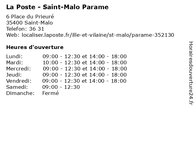 Termes de recherche pour La Poste - Saint-Malo Parame:poste, relais, la, saint, malo, agence, postale, colis, expédition, courriers, paramé |