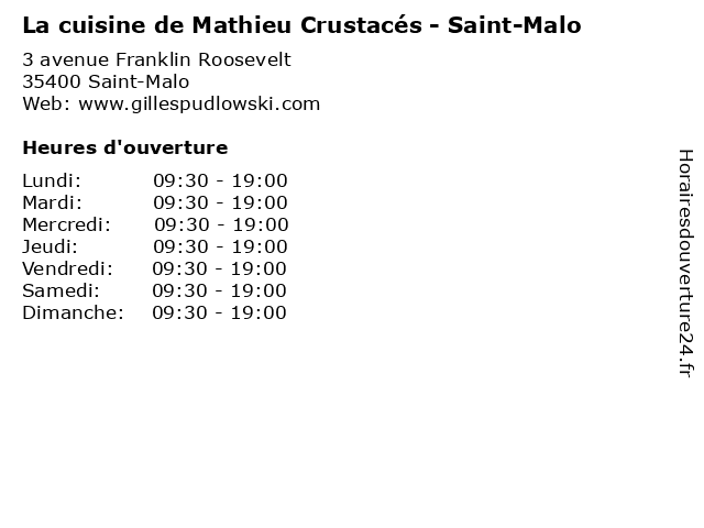 | Mercredi | 09:30-19:00 |