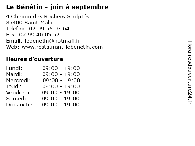 1 Restaurant Le Bénétin (Distance: 0,27 km) - Les Rochers Sculptés, 35400 Saint-Malo bar, brunch, bénétin, le, restaurant, service 2 Le Bistro Autour du Beurre - Avril à juin (Distance: 5,95 km) 7 Rue de l'Orme, 35400 Saint-Malo autour, avril, beurre, bistro, bistrot, cuisine, du, juin, le, restaurant, restauration 3 Max Aventure (Septembre à Juin) (Distance: 7,46 km) 38 rue de la Grassinais, 35400 St Malo aventure, enfants, hors, juin, loisirs, max, parc, scolaires, septembre, vacances 4 Office de Tourisme - Avril à Juin et Septembre (Distance: 8,62 km) 2 Bis boulevard Féart, 35800 Dinard avril, de, et, horaires des musées, juin, office, restaurants, septembre, tourisme, transports 5 Mr. Bricolage - du 1er septembre au 30 juin (Distance: 9,23 km) 17 rue de la Gare, 35800 Dinard 1er, 30, au, baby gifts, bath, bedroom, bricolage, decorate, develop, du, electricity, equipment, garden, juin, kitchen, mr., plants, septembre, tinker 6 Le Décollé - Avril à juin et septembre à octobre (Distance: 11,64 km) 1 Pointe du Décollé, 35800 Saint-Lunaire avril, cuisine, décollé, et, juin, le, octobre, restaurant, restauration, septembre |