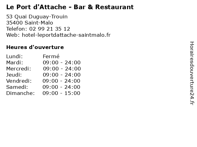 | Lundi | Fermé |
