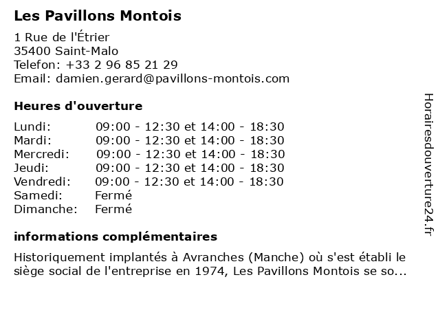 | Lundi | 09:00-12:30 et 14:00-18:30 |
