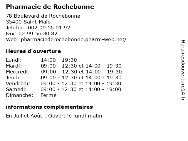 | Samedi | 09:00-12:30 et 14:00-19:00 |