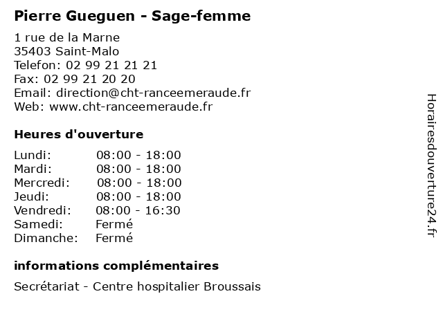 1 Juliette Gueguen - Psychothérapeute (Distance: 33,51 km) - Place du Centre, 22430 Erquy gueguen, juliette, psy, psychiatre, psychothérapeute, sante, soins 2 Pompes Funèbres et Marbrerie Gueguen (Distance: 40,22 km) 31 Avenue de la Libération, 22250 Broons avis de décès, crémation, entretien de sépulture, et, fleurs deuil, formalités après obsèques, funèbres, gueguen, inhumation, marbrerie, monument funéraire, pompes, pompes funèbres, prévoyance obsèques 5 Dr Joëlle Gueguen - Pédiatre (Distance: 59,84 km) 6 Boulevard de la Boutière, 35760 Saint-Grégoire docteur, dr, generaliste, gueguen, joëlle, medical, pédiatre, soin 6 Dr Jean-Pierre Nicolle - Anesthésiste (Distance: 0,00 km) 1 rue de la Marne, 35403 Saint-Malo anesthésiste, consultation, docteur, dr, jean, med, médecin, médecine, nicolle, pierre, réanimateur, traitement |