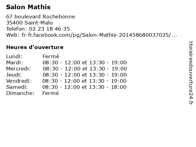 | Mercredi | 08:30-12:00 et 13:30-19:00 |