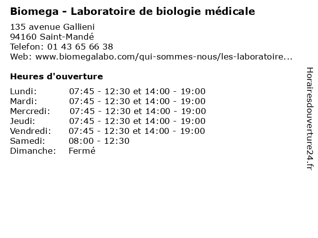 1 Biomega - Laboratoire de biologie médicale (Distance: 1,41 km) 6 allée Georges Pompidou, 94300 Vincennes analises, biologie, biomega, de, laboratoire, medicales, médicale, services 2 Biomega - Laboratoire de biologie médicale (Distance: 1,45 km) 245 avenue Daumesnil, 75012 Paris analises, biologie, biomega, de, laboratoire, medicales, médicale, services 3 Biomega - Laboratoire de biologie médicale (Distance: 2,85 km) 139 rue Defrance, 94300 Vincennes analises, biologie, biomega, de, laboratoire, medicales, médicale, services 4 Biomega - Laboratoire de biologie médicale (Distance: 6,02 km) 8 rue des Remises, 94100 Saint-Maur-des-Fossés analises, biologie, biomega, de, laboratoire, medicales, médicale, services 5 Biomega - Laboratoire de biologie médicale (Distance: 6,11 km) 61 avenue Roger Salengro, 94500 Champigny analises, biologie, biomega, de, laboratoire, medicales, médicale, services 6 Biomega - Laboratoire de biologie médicale (Distance: 6,57 km) 40 avenue de Verdun, 94000 Créteil analises, biologie, biomega, de, laboratoire, medicales, médicale, services |