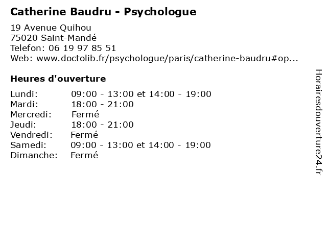 | Lundi | 09:00-13:00 et 14:00-19:00 |