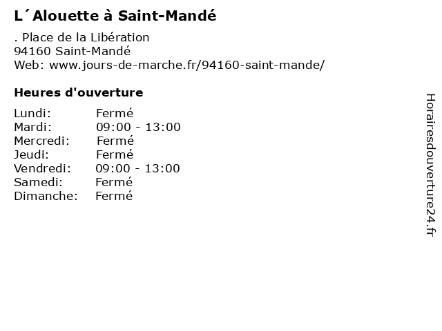 | Lundi | Fermé |