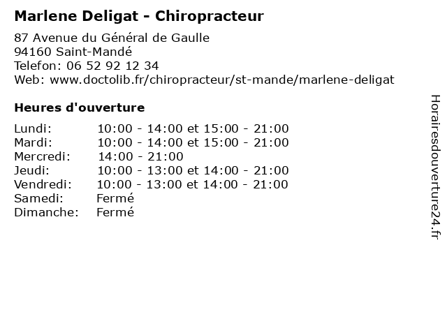 | Mardi | 10:00-14:00 et 15:00-21:00 |