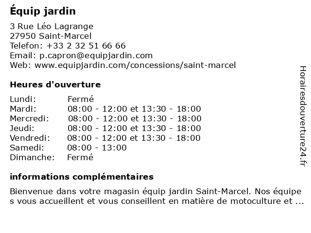 | Lundi | Fermé |