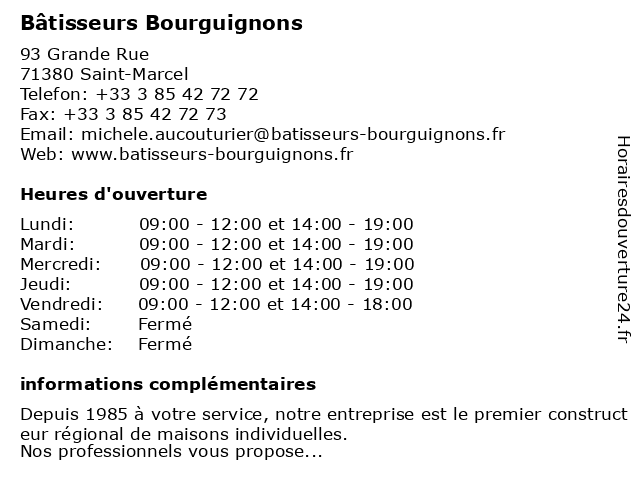 1 La Maison des Bâtisseurs (Distance: 2,97 km) 2 Rue Colette, 71100 Chalon-sur-Saône bâtisseurs, des, la, maison 2 Les Valoristes Bourguignons (Distance: 6,98 km) 45 rue André Marie Ampere, 71530 Champforgeuil bourguignons, déchets, environnement, les, préservation, valorisation, valoristes 3 Bâtisseurs Bourguignons (Distance: 52,22 km) 59 Grande Rue de la Coupée, 71850 Charnay-lès-Mâcon bourguignons, bâtisseurs 4 La Maison Des Bâtisseurs SA (Distance: 56,91 km) 58 Avenue Jacques Duhamel, 39100 Dole bâtisseurs, des, la, maison, sa |