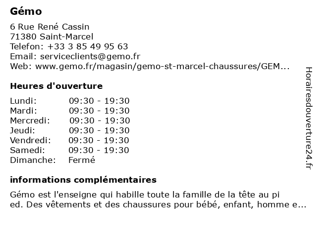 1 Cash Piscines (Distance: 0,31 km) 19 Rue René Cassin, 71380 Saint-Marcel accesoires, cash, electriques, piscine, piscines 2 GEMO CHALON S/ SAONE Chaussures et Vêtements (Distance: 3,69 km) Avenue de l' Europe, 71100 Chalon-sur-Saône bijoux et accesoires, chalon, chaussures, et, gemo, lingerie, magasin bébé, maroquinerie, mode et habillement, s/, saone, vêtements, vêtements bébé, vêtements enfant, vêtements femme, vêtements homme 3 Gémo Chaussures & Vêtements (Distance: 21,30 km) - A6 Aire De Beaune, 21190 Merceuil chaussures, femme, gémo, vêtements 4 Savanna Lingerie (Distance: 31,33 km) 13 Grande Rue, 71500 Louhans accesoires, habillement, lingerie, savanna, vêtement 5 GEMO TORCY Chaussures et Vêtements (Distance: 32,78 km) 12 RUE JEAN VILAR, 71210 Torcy bijoux et accesoires, chaussures, et, gemo, lingerie, magasin bébé, maroquinerie, mode et habillement, torcy, vêtements, vêtements bébé, vêtements enfant, vêtements femme, vêtements homme 6 GEMO MONTCEAU LES MINES Vêtements (Distance: 39,38 km) Avenue Maréchal Leclerc, 71300 Montceau-les-Mines bijoux et accesoires, chaussures, gemo, les, lingerie, magasin bébé, maroquinerie, mines, mode et habillement, montceau, vêtements, vêtements bébé, vêtements enfant, vêtements femme, vêtements homme |