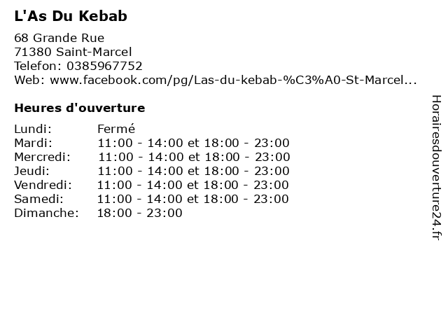 | Mardi | 11:00-14:00 et 18:00-23:00 |