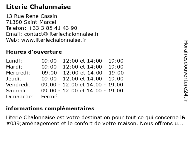 | Samedi | 09:00-12:00 et 14:00-19:00 |