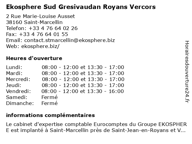 1 Ekosphere Sud Gresivaudan Royans Vercors (Distance: 13,86 km) 3 Place de l'Église, 26190 Saint-Jean-en-Royans ekosphere, gresivaudan, royans, sud, vercors 2 Maison du Département de Sud-Grésivaudan (Distance: 1,00 km) - avenue Jules David, 38160 Saint-Marcellin aide, assistance, de, du, département, enfance, grésivaudan, information, maison, public, service, sociale, sud 3 Communauté de communes - Sud Grésivaudan (Distance: 1,10 km) 7 rue du Colombier, 38162 Saint-Marcellin administration, communauté, communes, de, d’information, grésivaudan, publics, services, sud 4 Imagerie Du Sud Grésivaudan (Distance: 1,55 km) 58 Allée Marcelle Feugier, 38160 Saint-Marcellin du, grésivaudan, imagerie, sud 5 Au Roman Du Vercors (Distance: 2,93 km) 321 Grande Rue, 38160 Saint-Romans atelier, au, du, hd, restaurants, roman, vercors 6 |