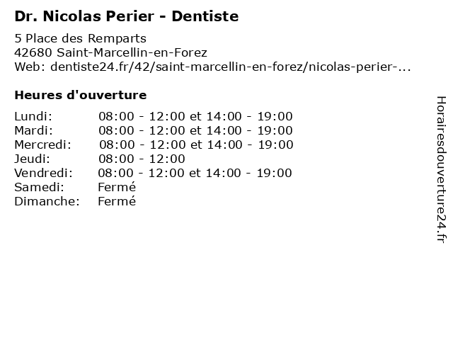 | Mercredi | 08:00-12:00 et 14:00-19:00 |
