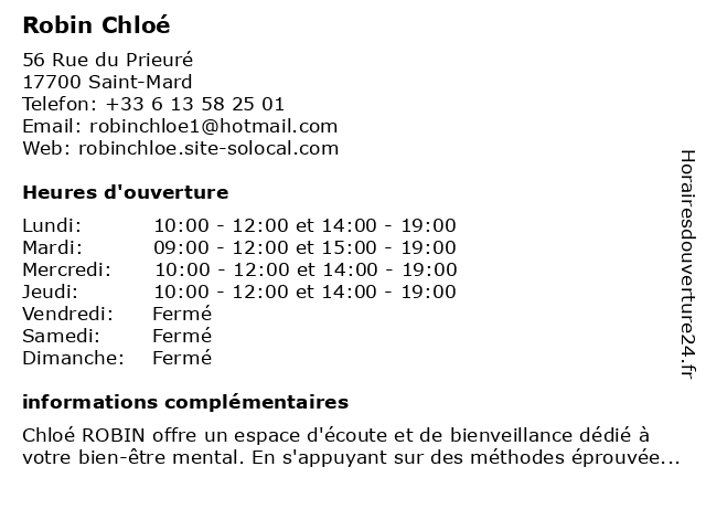 | Mercredi | 10:00-12:00 et 14:00-19:00 |