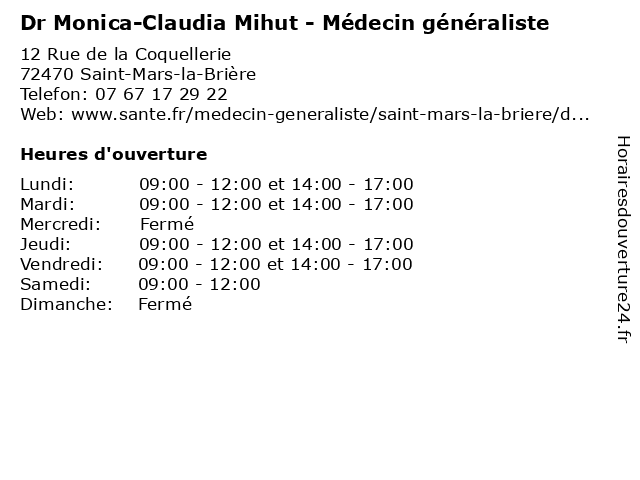 | Lundi | 09:00-12:00 et 14:00-17:00 |