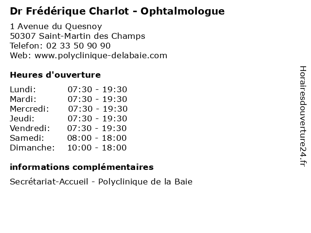 1 Dr Frédérique Charlot - Ophtalmologue (Distance: 0,02 km) 3 Avenue du Quesnoy, 50300 Saint-Martin-des-Champs charlot, consultation, docteur, dr, frédérique, med, médecin, médecine, ophtalmologue, secrétariat, traitement 2 Dr Frédérique Charlot - Ophtalmologue (Distance: 0,04 km) 3 Avenue du Quesnoy, 50300 Saint-Martin-des-Champs charlot, dr, frédérique, ophtalmologie, ophtalmologistes, ophtalmologue, vision 3 Dr Edouard Benois - Ophtalmologue (Distance: 0,00 km) 1 Avenue du Quesnoy, 50307 Saint-Martin des Champs avranches, baie, benois, de, dr, edouard, la, ophtalmologie, ophtalmologistes, ophtalmologue, polyclinique, vision 4 Dr Jean Clement - Ophtalmologue (Distance: 0,00 km) 1 Avenue du Quesnoy, 50307 Saint-Martin des Champs avranches, baie, clement, de, dr, jean, la, ophtalmologie, ophtalmologistes, ophtalmologue, polyclinique, vision 5 Dr Michel Haddad - Ophtalmologue (Distance: 0,00 km) 1 Avenue du Quesnoy, 50307 Saint-Martin des Champs avranches, baie, de, dr, haddad, la, michel, ophtalmologie, ophtalmologistes, ophtalmologue, polyclinique, vision 6 Dr Eliana Keymer-Yreux - Ophtalmologue (Distance: 0,00 km) 1 Avenue du Quesnoy, 50307 Saint-Martin des Champs avranches, baie, de, dr, eliana, keymer, la, ophtalmologie, ophtalmologistes, ophtalmologue, polyclinique, vision, yreux |