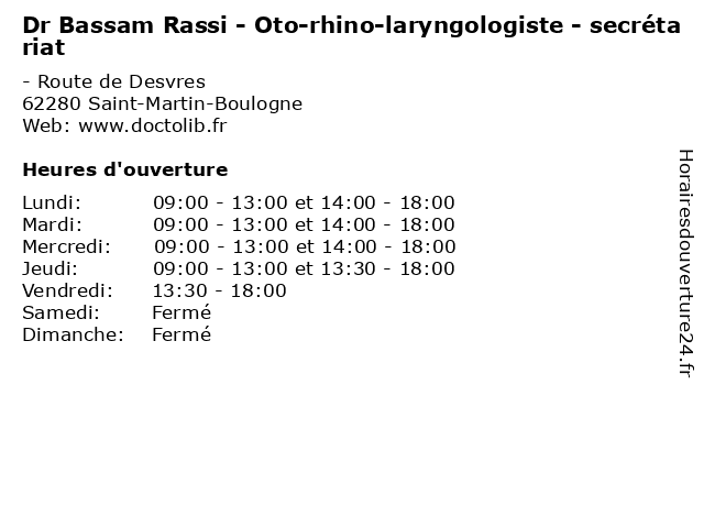 | Lundi | 09:00-13:00 et 14:00-18:00 |