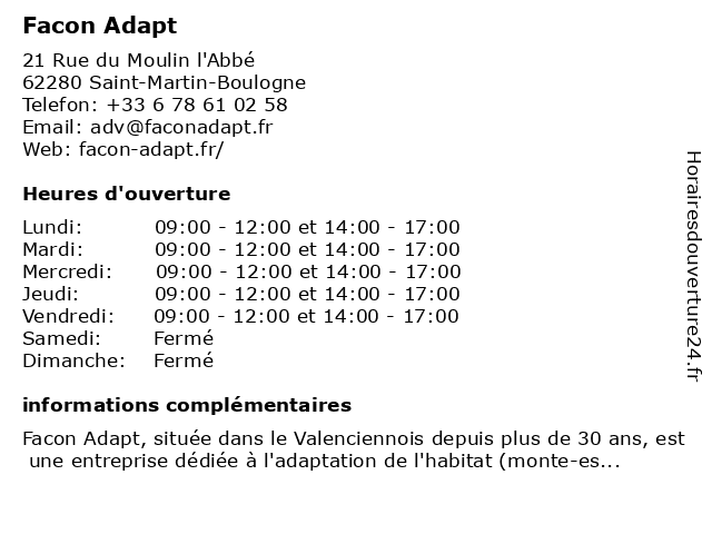 | Lundi | 09:00-12:00 et 14:00-17:00 |