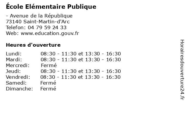 | Mardi | 08:30-11:30 et 13:30-16:30 |
