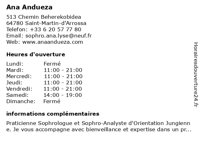 | Samedi | 14:00-19:00 |