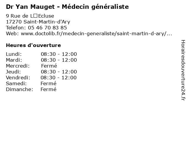 Termes de recherche pour Dr Yan Mauget - Médecin généraliste:soins, généraliste, docteur, médecin, yan, dr, mauget |