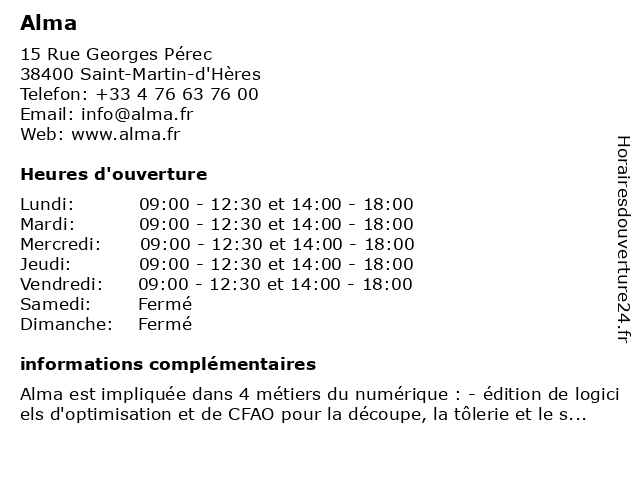 | Lundi | 09:00-12:30 et 14:00-18:00 |