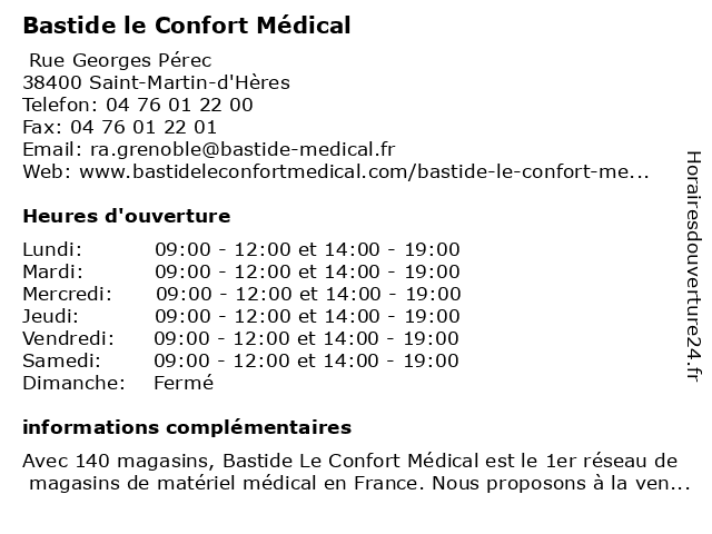 | Samedi | 09:00-12:00 et 14:00-19:00 |