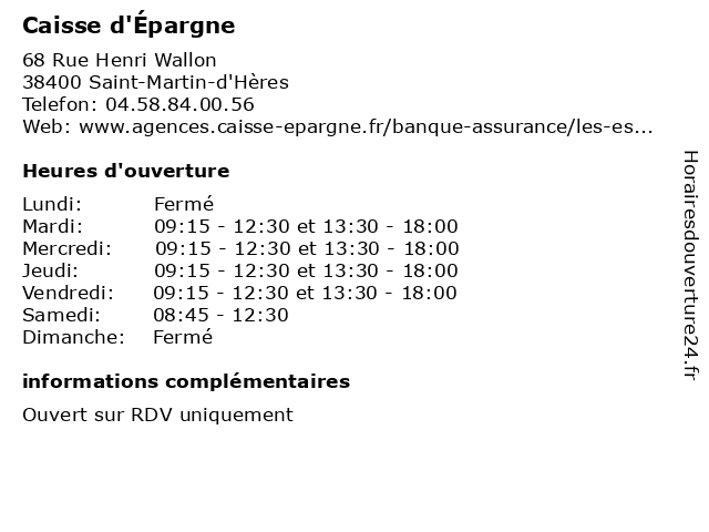 1 Caisse d'Épargne (Distance: 1,40 km) 132 Avenue Jean Perrot, 38100 Grenoble banque, caisse, carte, d'epargne, d'épargne, services 2 Caisse d'Épargne (Distance: 1,64 km) 26 Place de la République, 38400 Saint-Martin-d'Hères banque, caisse, carte, d'epargne, d'épargne, services 3 Caisse d'Épargne (Distance: 2,63 km) 10 Rue Hébert,, 38000 Grenoble banque, caisse, carte, d'epargne, d'épargne, services 4 Caisse d'Épargne (Distance: 2,63 km) 10 Rue Hébert,, 38000 Grenoble banque, caisse, carte, d'epargne, d'épargne, services 5 Caisse d'Épargne (Distance: 2,70 km) 158 Avenue Jean Jaurès, 38320 Eybens banque, caisse, carte, d'epargne, d'épargne, services 6 Caisse d'Épargne (Distance: 2,82 km) 26 Boulevard Maréchal Foch,, 38000 Grenoble banque, caisse, carte, d'epargne, d'épargne, services |