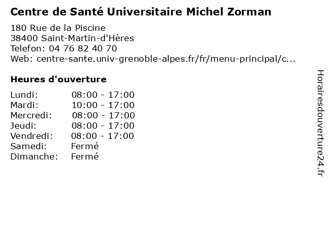 Termes de recherche pour Centre de Santé Universitaire Michel Zorman:du, de, saint, martin, centre, michel, travail, famille, santé, medical, d'hères, universitaire, campus, zorman |