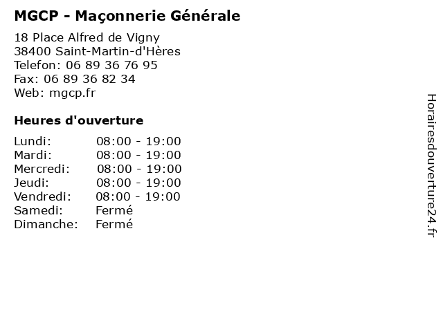 | Vendredi | 08:00-19:00 |