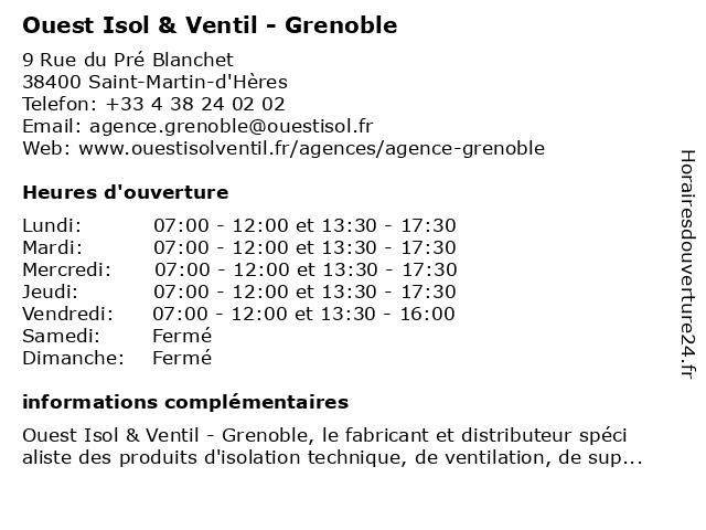 | Lundi | 07:00-12:00 et 13:30-17:30 |