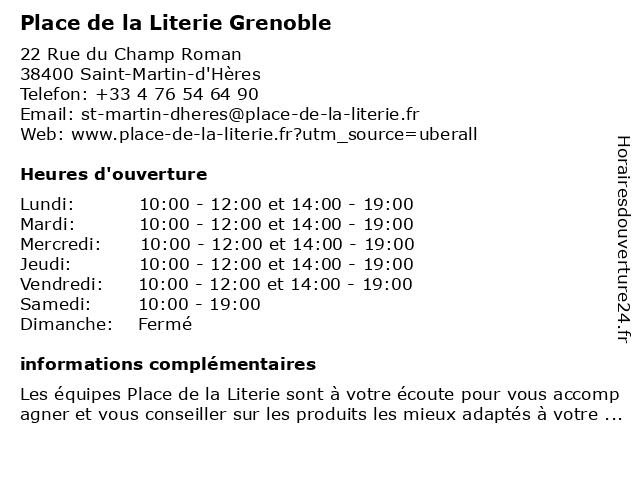 | Mercredi | 10:00-12:00 et 14:00-19:00 |