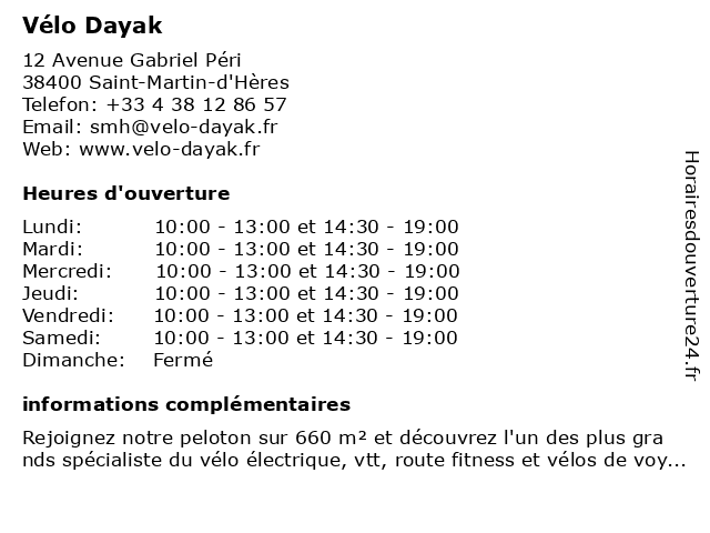| Lundi | 10:00-13:00 et 14:30-19:00 |