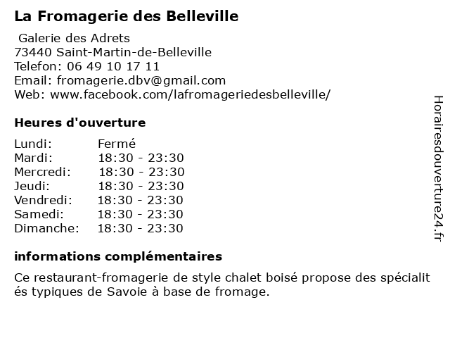 | Lundi | Fermé |