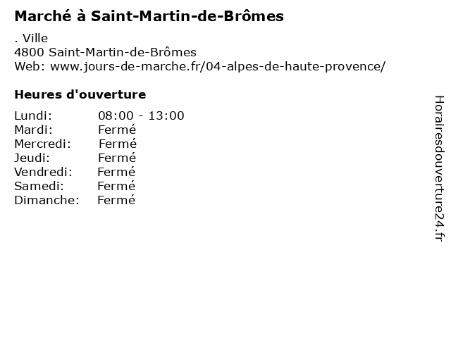| Lundi | 08:00-13:00 |