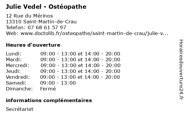 | Mardi | 09:00-13:00 et 14:00-20:00 |