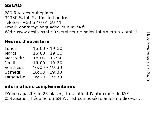 1 Association Servi Sud- SSIAD (Distance: 24,71 km) 255 Rue de la Marquerose, 34070 Montpellier association, servi, ssiad, sud 2 Croix-Rouge Française (SSIAD-Bureaux) (Distance: 52,04 km) 12 Rue de Tunis, 30000 Nimes aide, bureaux, creche, croix, française, prévention, rouge, rééducation, santé, services, ssiad 3 Croix-Rouge Française (SSIAD-Intervention) (Distance: 52,04 km) 12 Rue de Tunis, 30000 Nimes aide, creche, croix, française, intervention, prévention, rouge, rééducation, santé, services, ssiad |