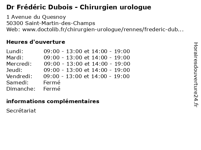 1 Dr Arnaud Delreux - Chirurgien urologue (Distance: 0,00 km) 1 Avenue du Quesnoy, 50300 Saint-Martin-des-Champs arnaud, chirurgien, delreux, dr, medecin, sante, soins, urologue 2 Dr Edouard Tariel - Chirurgien urologue (Distance: 0,00 km) 1 Avenue du Quesnoy, 50300 Saint-Martin-des-Champs chirurgien, dr, edouard, medecin, sante, soins, tariel, urologue 3 Dr Sébastien Vincendeau - Chirurgien urologue (Distance: 0,04 km) 1 Avenue du Quesnoy, 50300 Saint-Martin-des-Champs chirurgien, docteur, dr, sante, soins, sébastien, urologue, vincendeau 4 Dr Frédéric Dubois - Chirurgien urologique (Distance: 0,05 km) 1 Avenue du Quesnoy, 50307 Saint-Martin des Champs andrologie, andrologue, avranches, baie, chirurgien, de, dr, dubois, frédéric, la, polyclinique, urologique, urologue 5 Dr Jean-François Olivo - Chirurgien urologue (Distance: 0,05 km) 1 Avenue du Quesnoy, 50300 Saint-Martin-des-Champs chirurgie, chirurgien, dr, françois, general, jean, olivo, soins, urologue 6 Dr Romain Bonniol - Chirurgien urologue (Distance: 0,05 km) 1 Avenue du Quesnoy, 50300 Saint-Martin-des-Champs bonniol, chirurgie, chirurgien, dr, general, romain, soins, urologue |