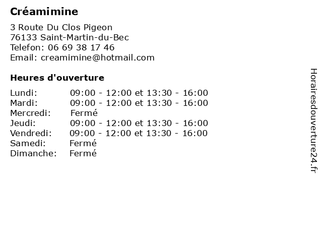 Lundi | 09:00-12:00 et 13:30-16:00 |