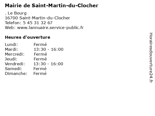 Termes de recherche pour Mairie de Saint-Martin-du-Clocher:du, de, saint, martin, administration, mairie, clocher, assoc public |