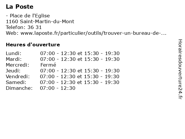 | Mardi | 07:00-12:30 et 15:30-19:30 |