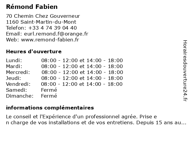 | Lundi | 08:00-12:00 et 14:00-18:00 |